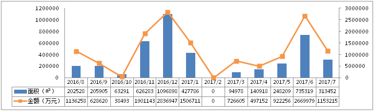 7月,杭州市区共成交十二宗土地,成交总面积31.3公顷(折合470.2亩),总可建面积87.6万方,总成交金额115.3亿元。