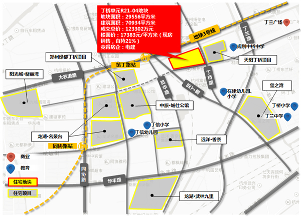 丁桥宅地由郑州绿都首先报价,首轮报价即达溢价70%,随后,融信、我国电建参加战役。终究,我国电建拔得头筹,以总价123302万元,折合楼面价17383元/平方米竞得。项目需现房出售且自我克制21%。这也是我国电建初次入驻杭州。