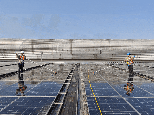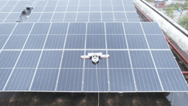 机器人投入清洗运维后,光伏清洗作业功率较传统人工提高300%,人力本钱下降约91.7%,光伏板发电功率提高至8%,有用优化光伏组件转化功率,为企业绿色发电注入微弱动能。